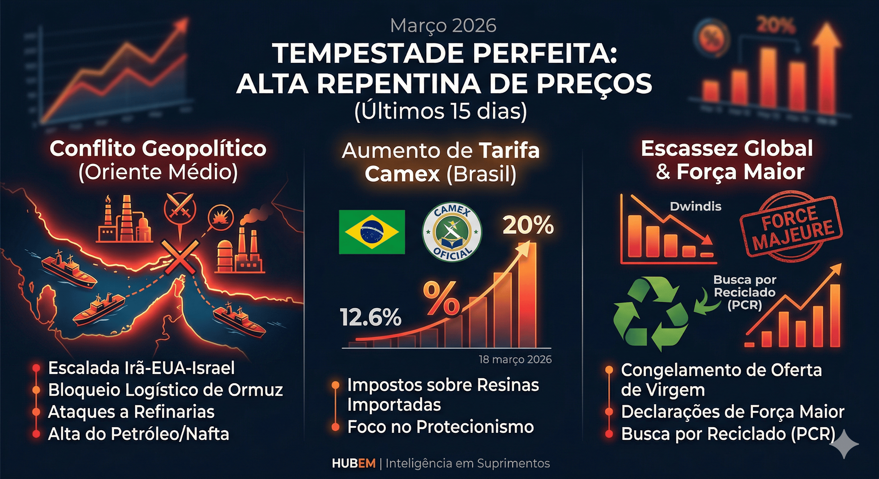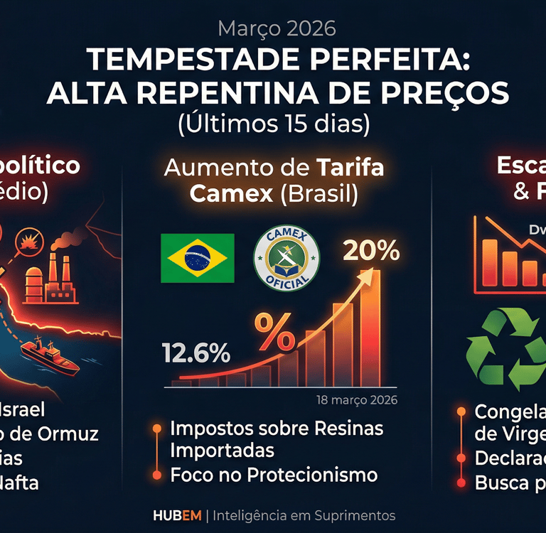 O Impacto no Chão de Fábrica: Com PE e PP subindo mais de 35%, o custo de reposição de estoque tornou-se o maior desafio financeiro do ano.